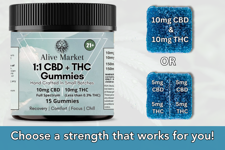 Each of our gummies contains 10mg of Delta-9 THC, allowing for a safe and enjoyable experience without exceeding the legal 0.3% limit.